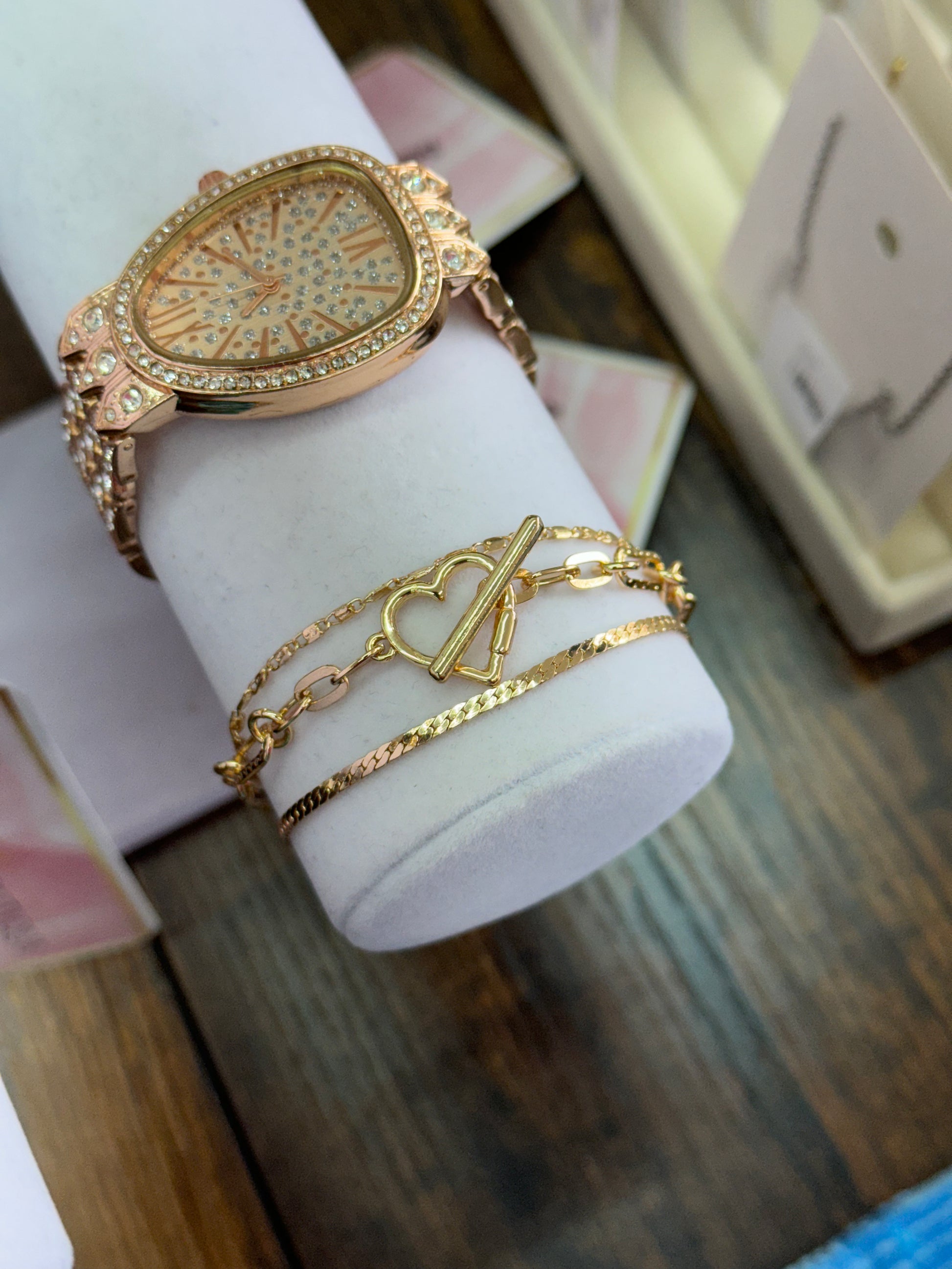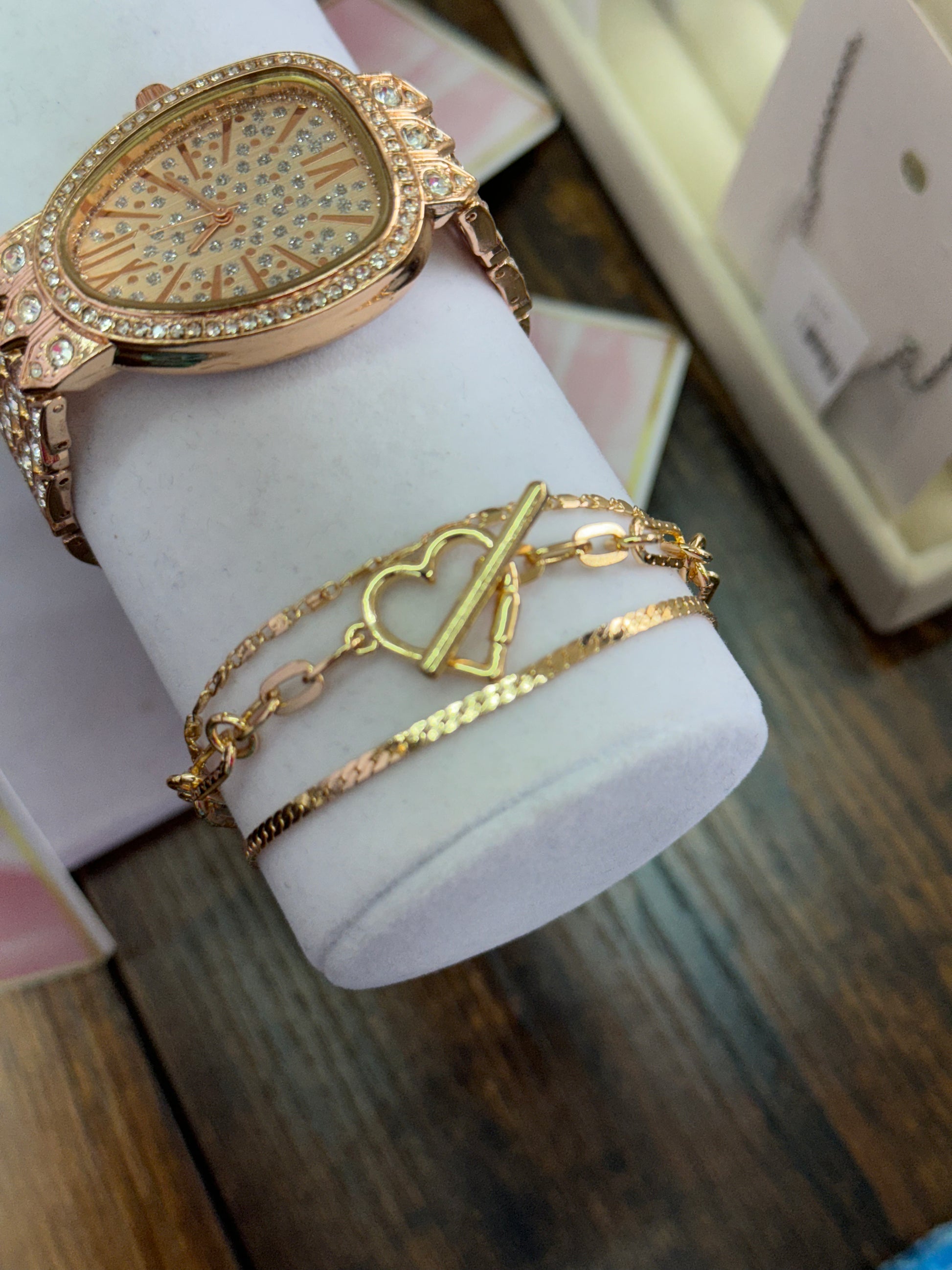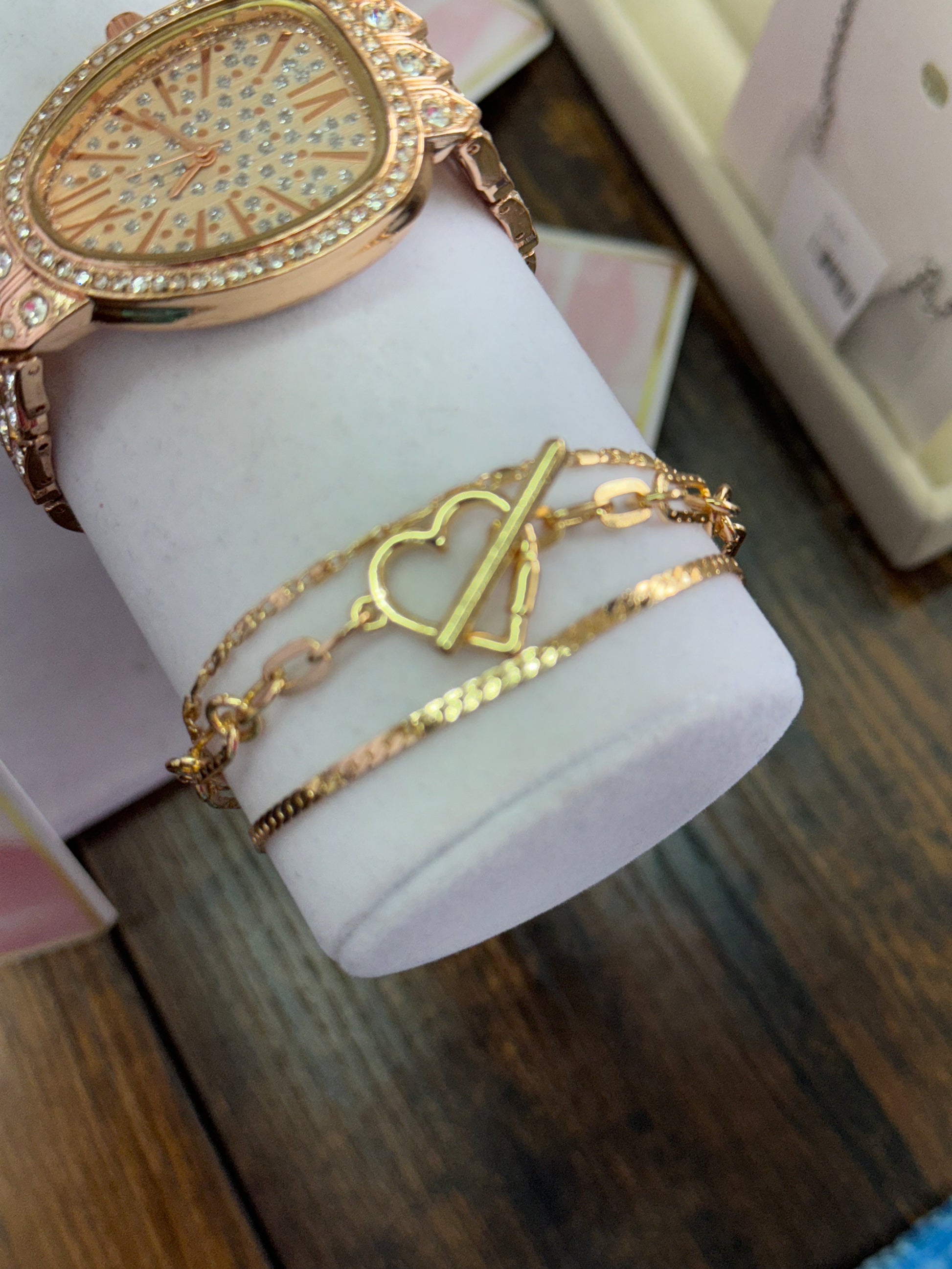 This charming 3-layer bracelet features an innovative all-in-one clasp design, eliminating the hassle of multiple fasteners. The heart motif adds a touch of sentiment to this on-trend accessory. Crafted to provide a premium look without the premium price point, it's an accessible way to elevate your jewelry collection.
