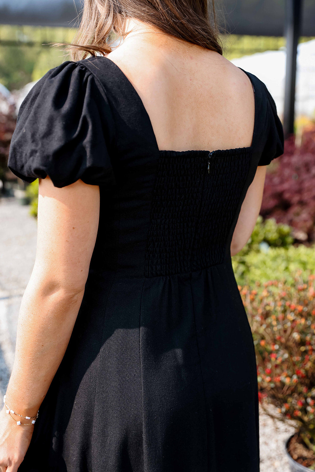 Timeless and effortlessly refined, this black dress is your go-to for special occasions or chic everyday moments. Designed with elegance and comfort in mind, it’s a classic piece that never goes out of style.