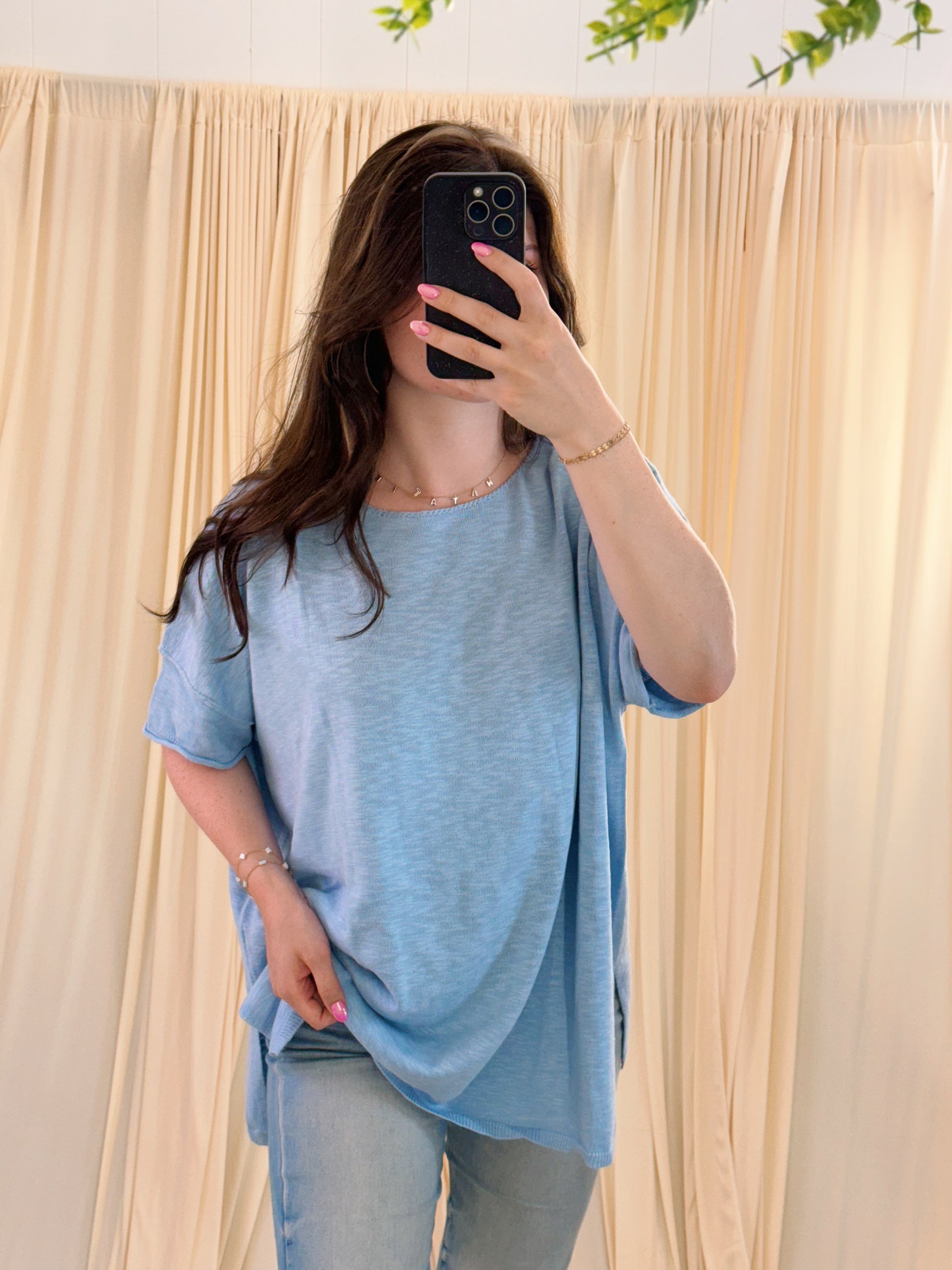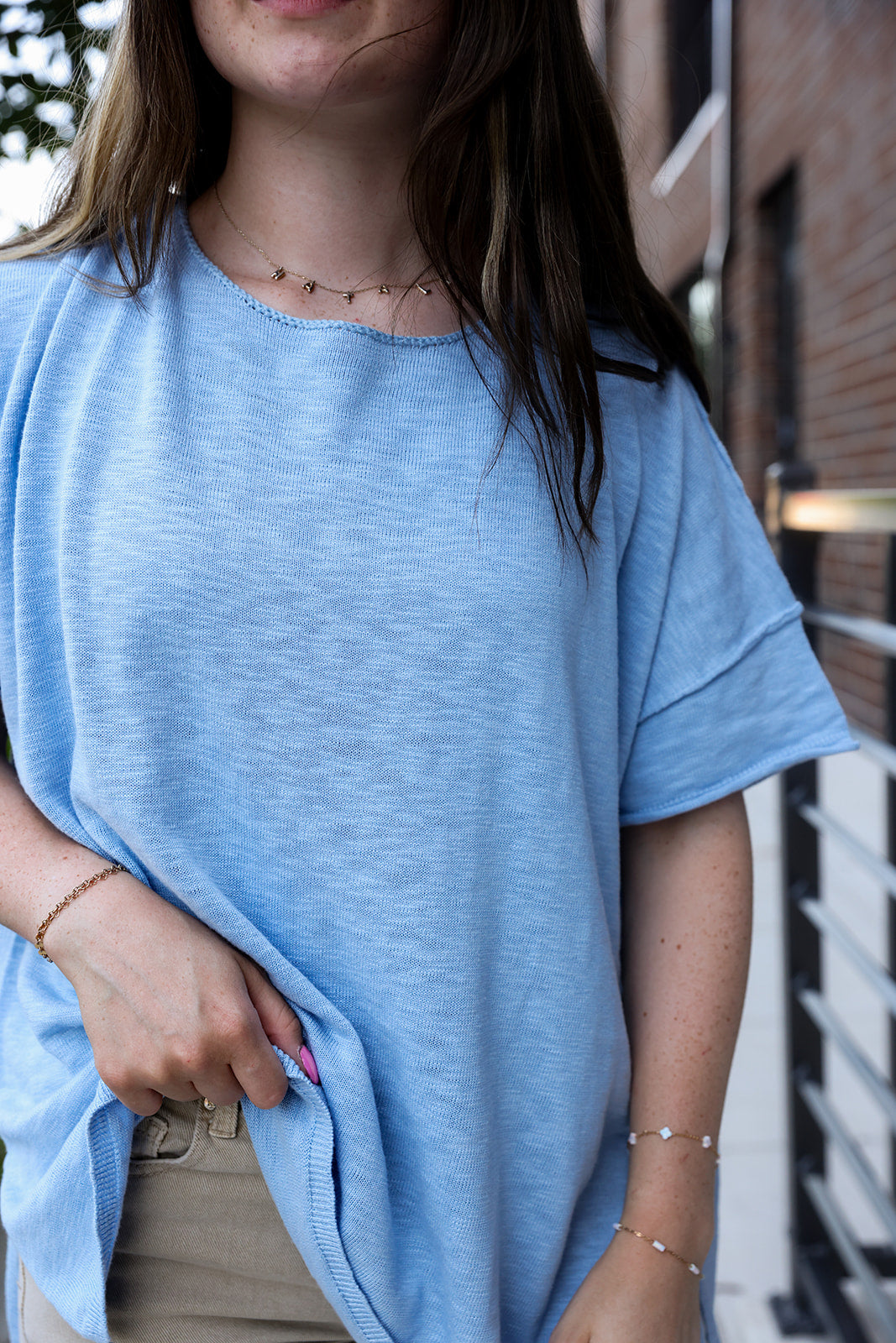 Breezy and relaxed, the Coastal Sky Crew is made for laid-back days and effortless style. With its loose oversized fit, classic crewneck design, and easy short sleeves, this piece is the perfect balance of comfort and casual chic. Pair it with denim, shorts, or layered accessories for that coastal-cool vibe.