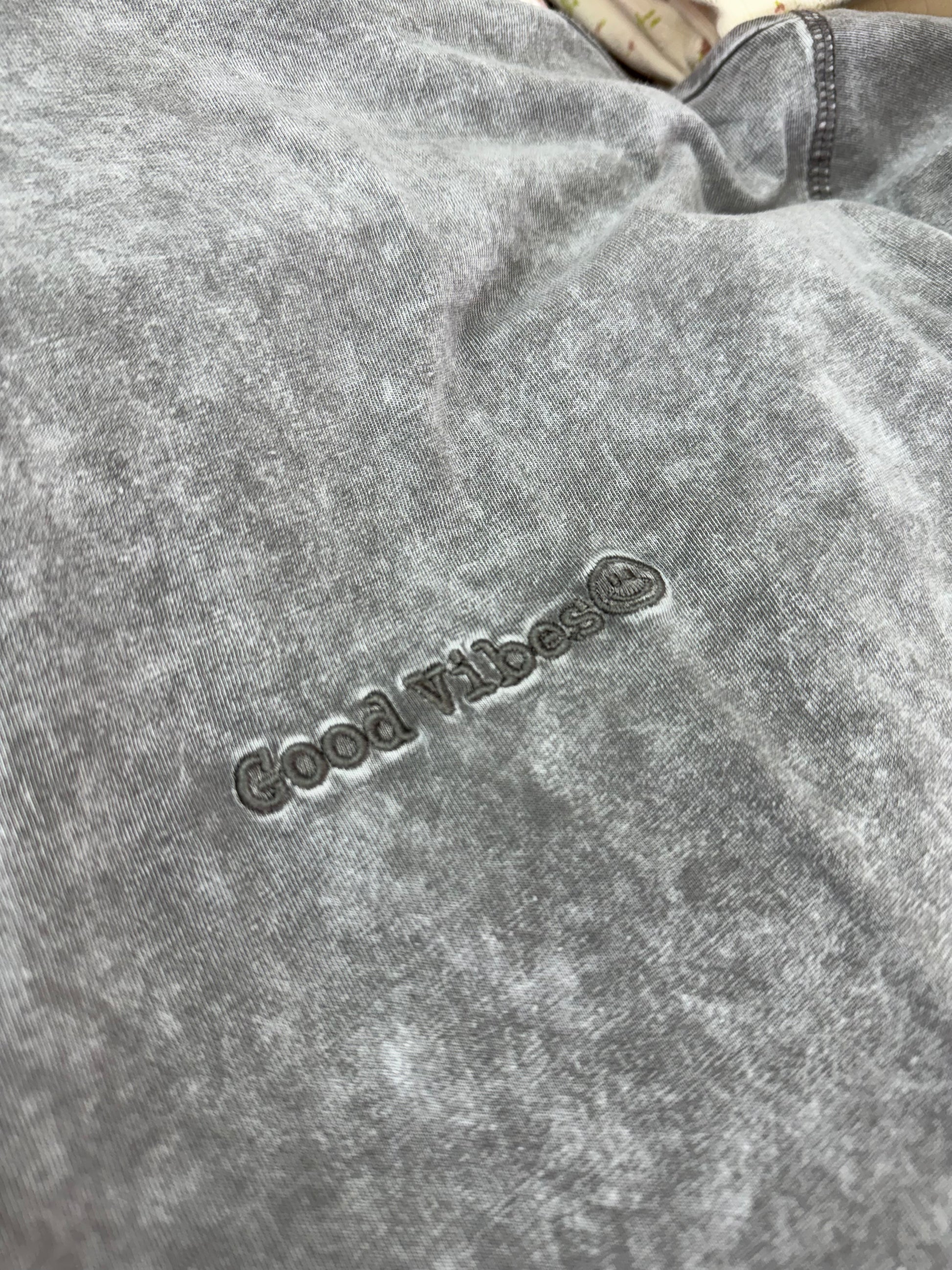 Function: “Good Vibes” embroidery adds a cheerful touch, making it perfect for everyday wear.