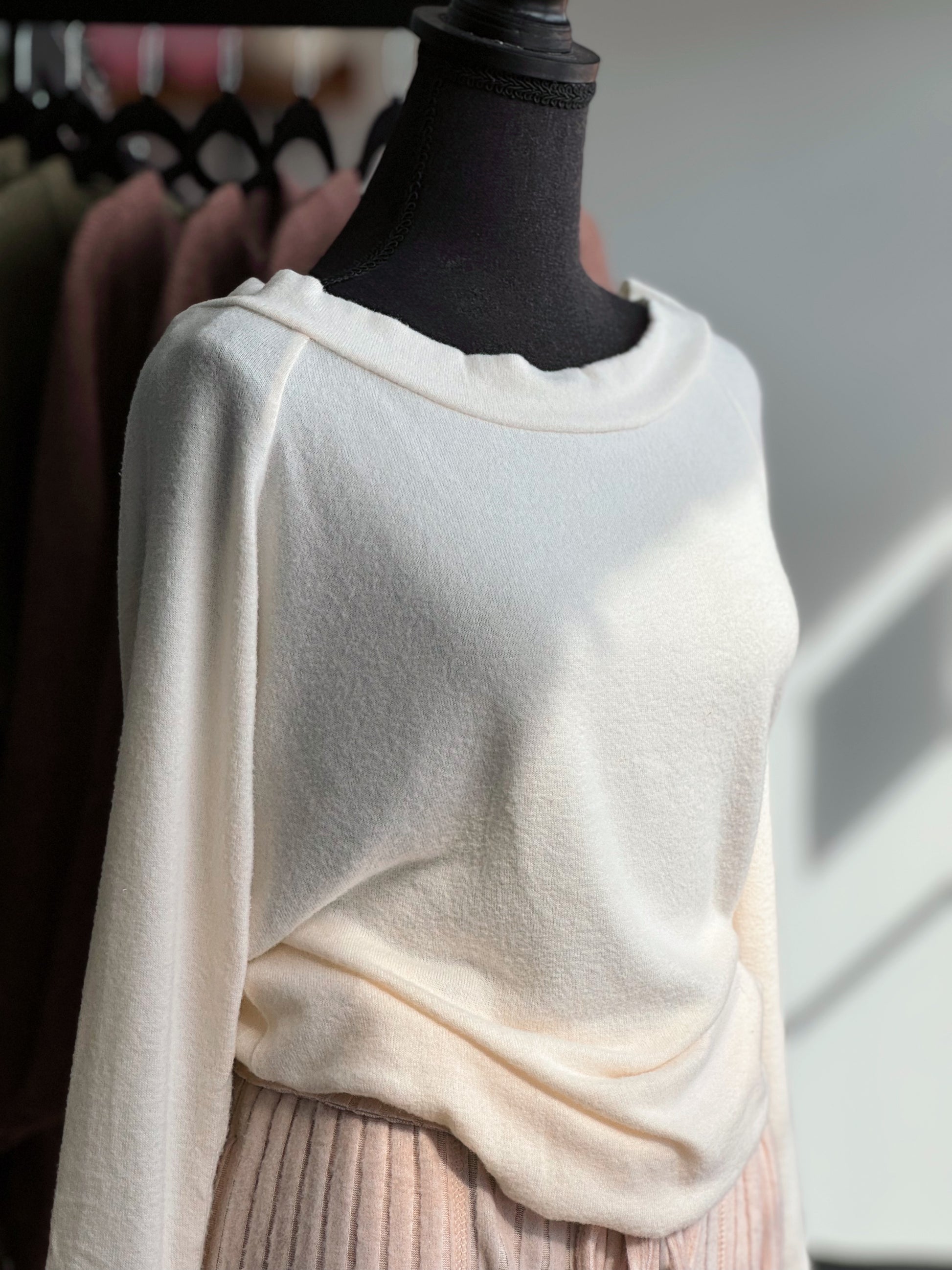 Simple yet stunning, the Sweetest, Ivory Shirt is a timeless staple that pairs elegance with comfort. With its soft texture and graceful boat neckline, this top is perfect for effortless everyday styling.