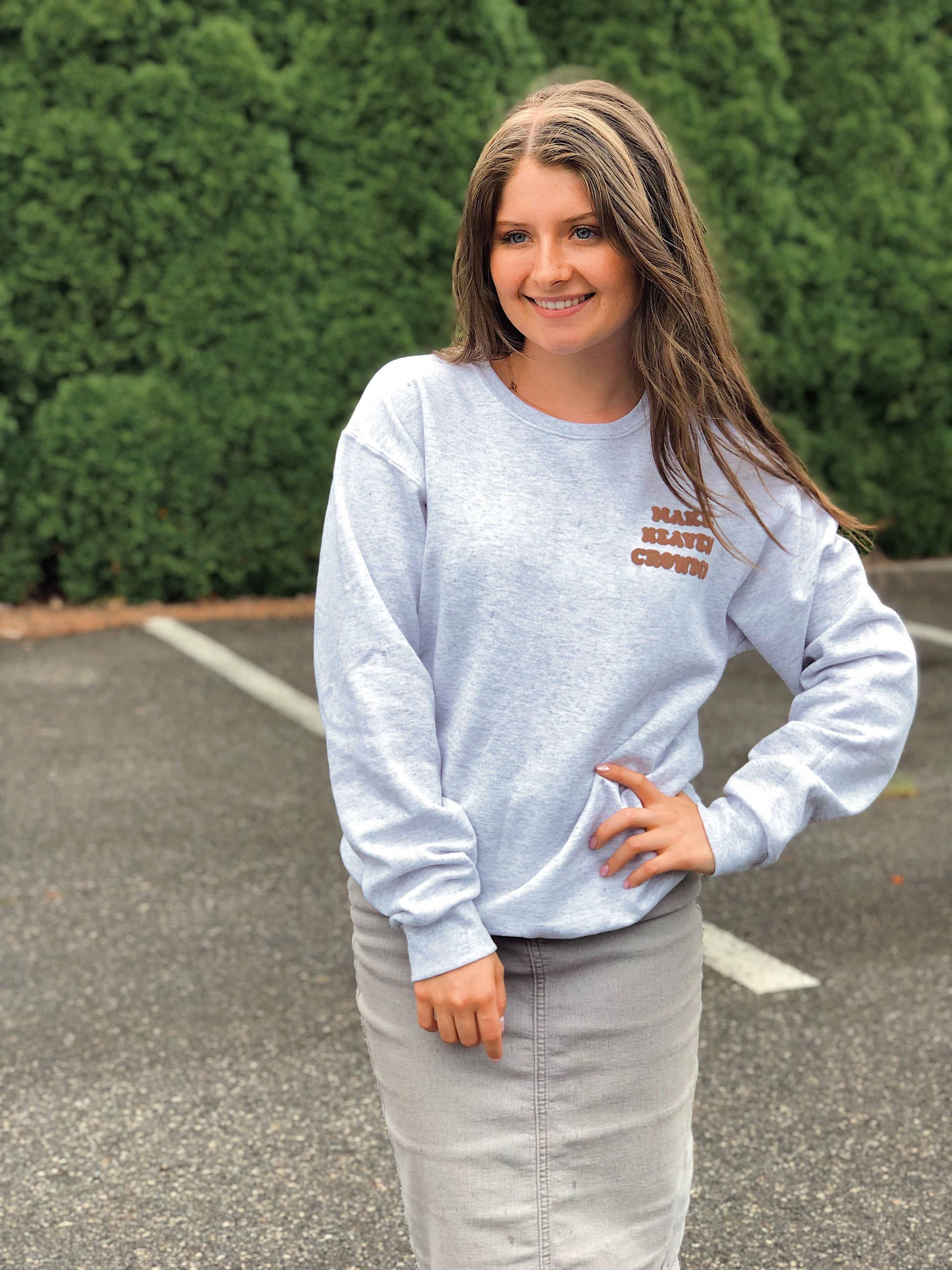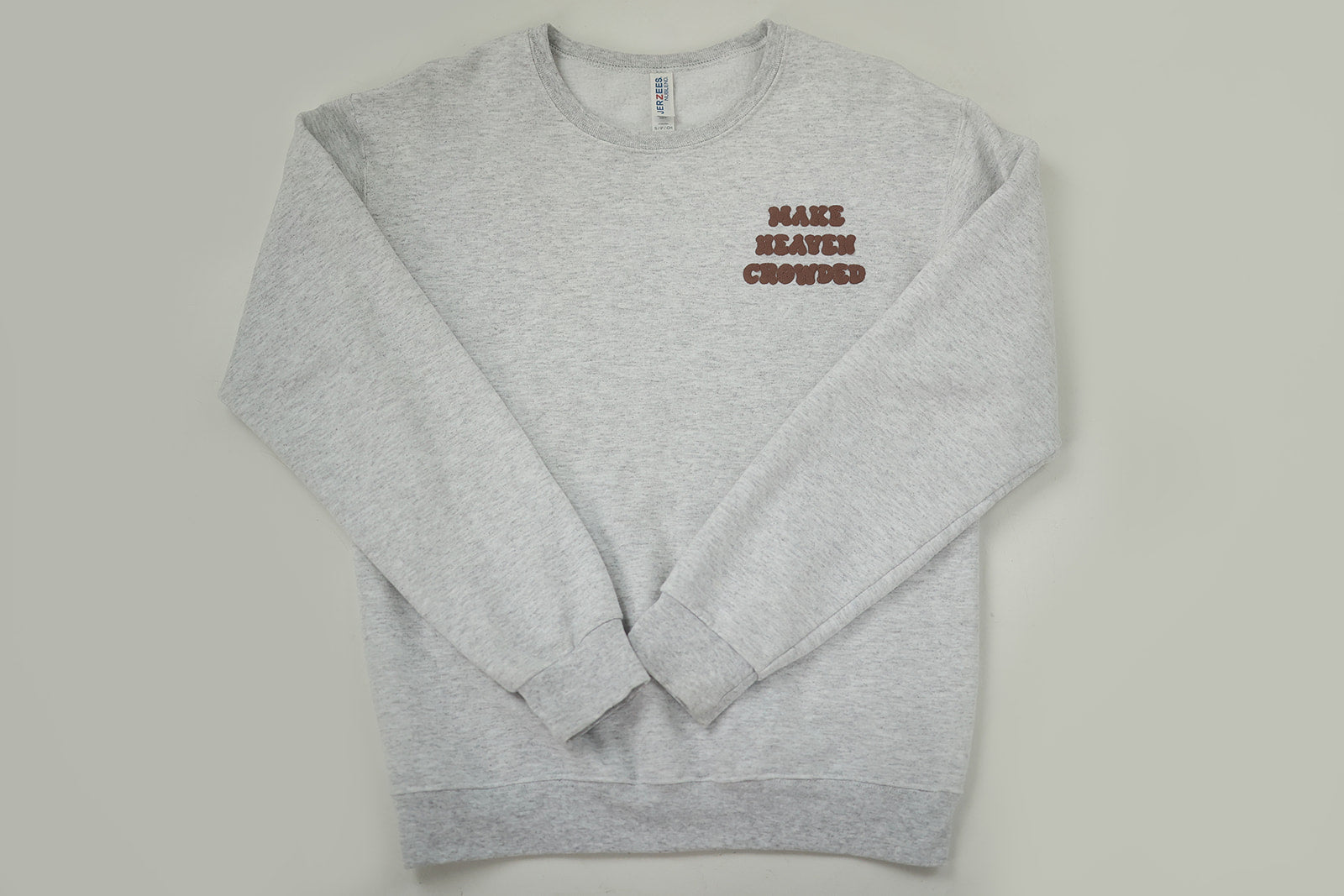 A meaningful message meets everyday comfort in this stylish crewneck. With bold puffer vinyl lettering that makes a statement, this piece is designed to keep you cozy while spreading faith and positivity.