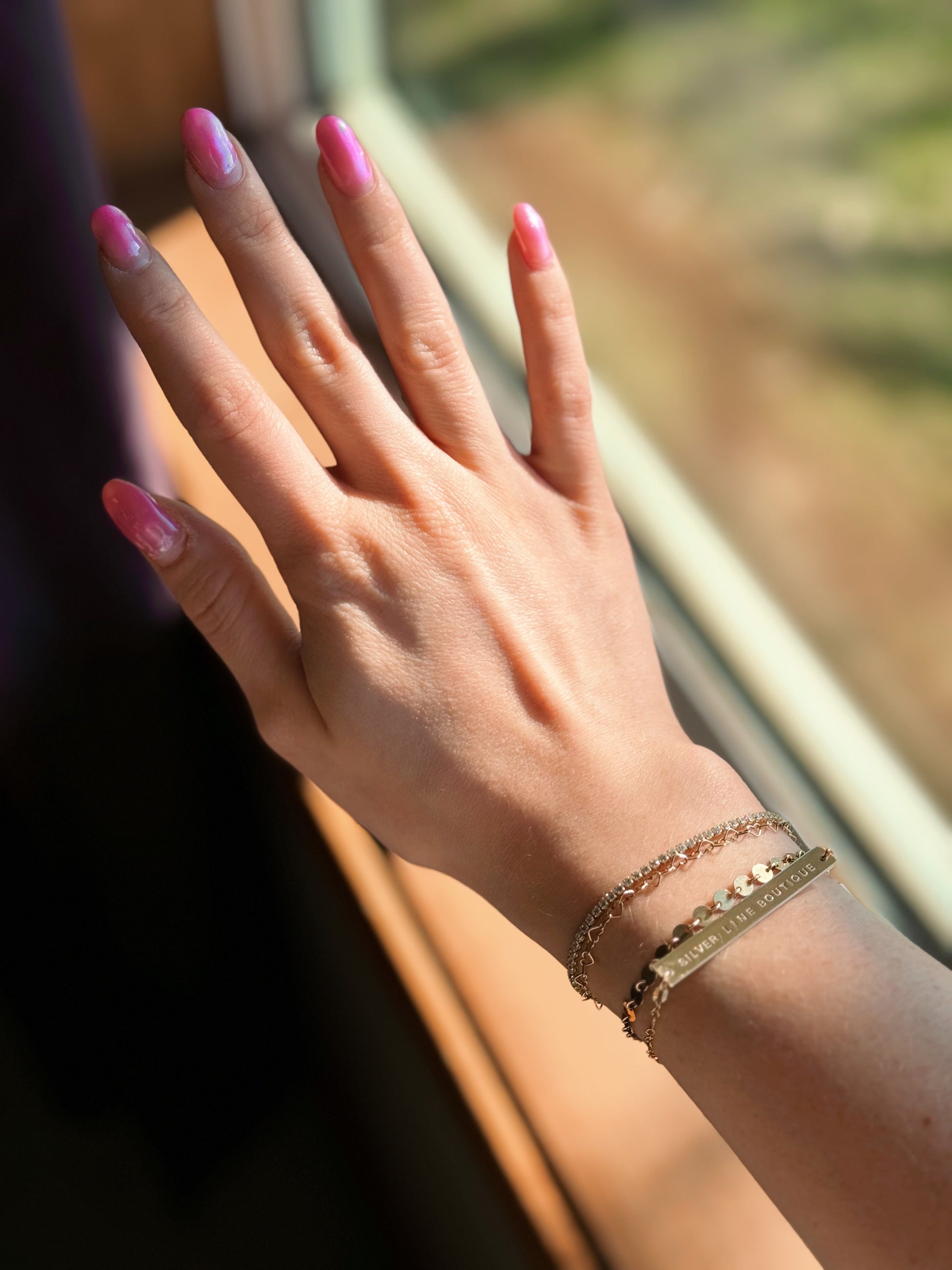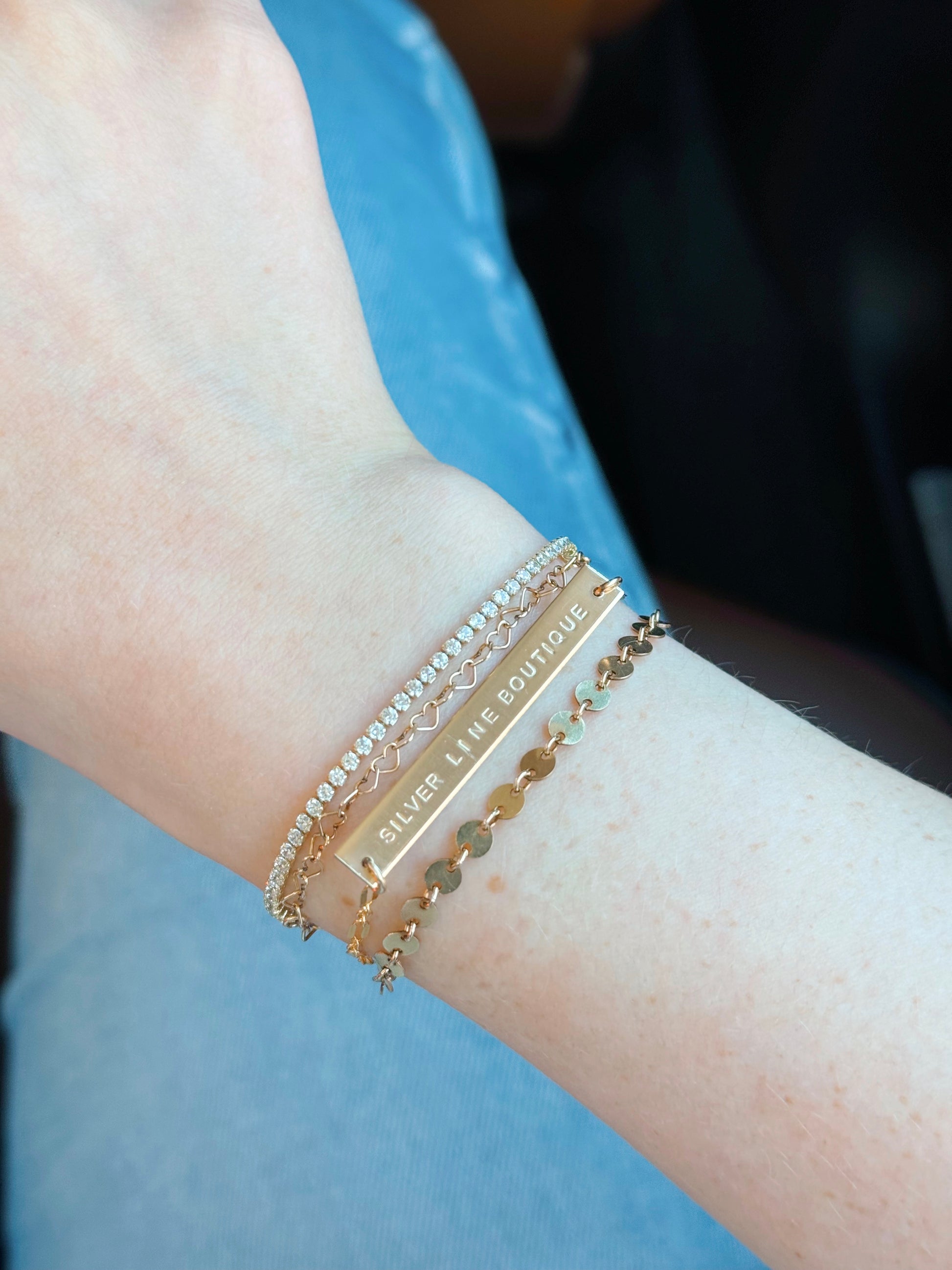 *This is a preorder for permanent jewelry. Permanent jewelry cannot be shipped. This is an in person activity. Returns are unavailable for personalized items. Please note, the corners may get caught while changing clothes.