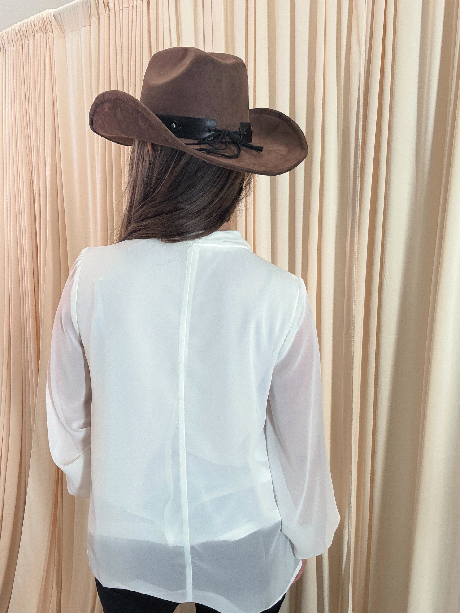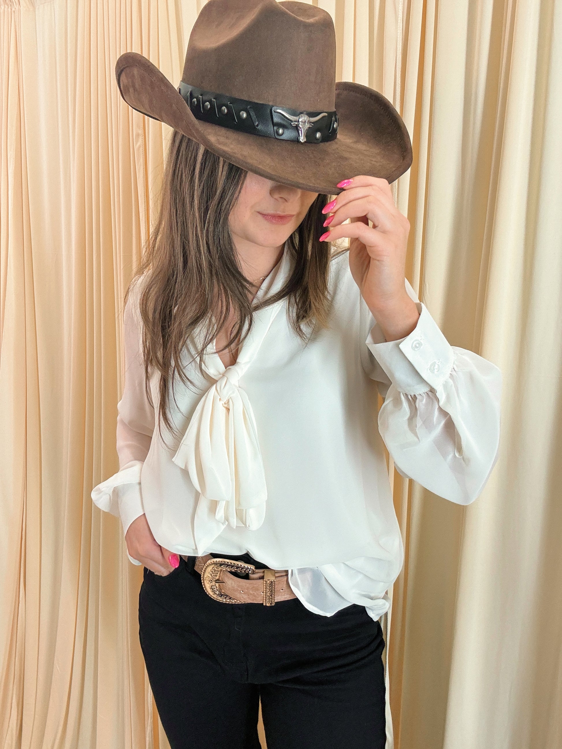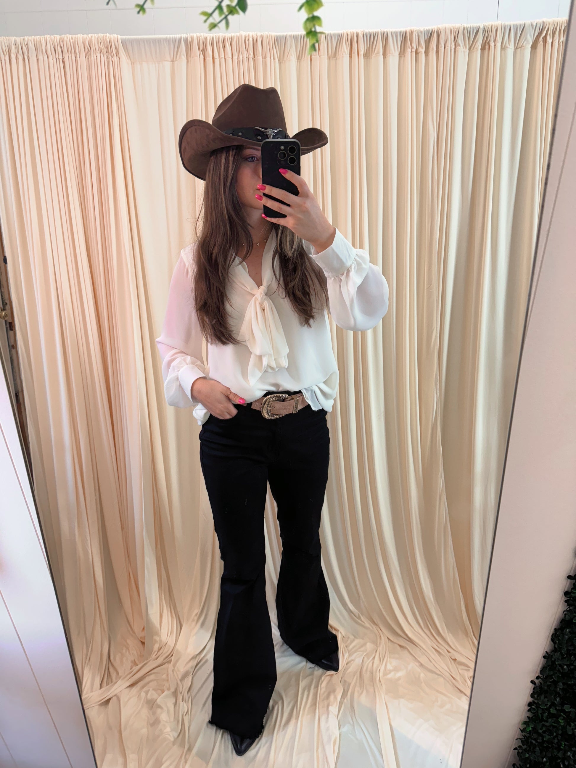 Elegant and effortlessly feminine, the Pearl Temptation Blouse is the perfect piece to elevate your wardrobe. With delicate sheer sleeves, a front tie detail, and a lined bodice, it blends charm and comfort in one timeless design.